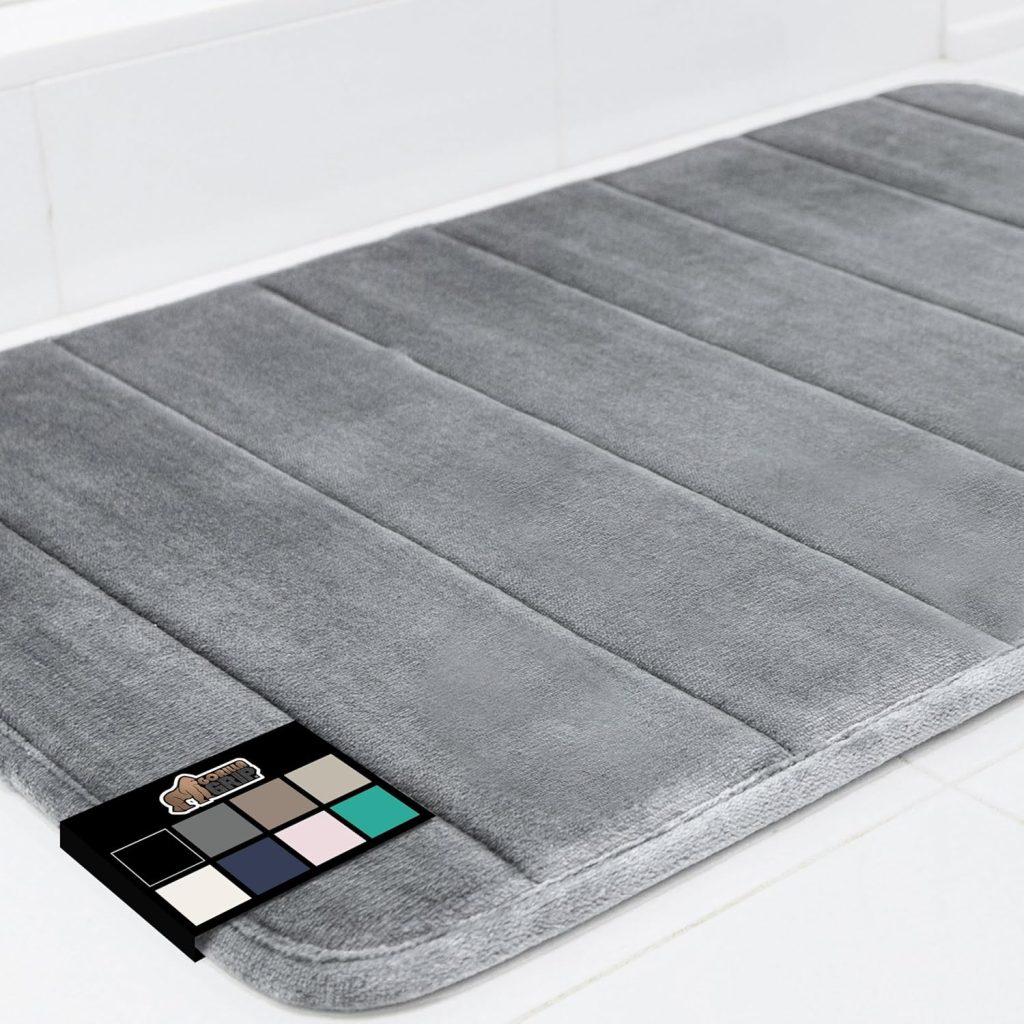 Gorilla Grip Memory Foam Bathroom Rug, Soft Absorbent Comfortable Bath Mat, Dots on Underside, Machine Wash Bathmat, Cushioned Shower Floor Carpet Rugs, Room Accessories, 24x17 Graphite Gray